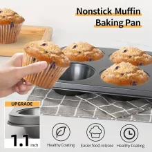 Made for convenience and long-lasting use, these muffin pans are coated with a premium nonstick surface that allows baked goods to slide out effortlessly—no more stuck muffins or messy cleanup. The carbon steel material resists warping, even at high temperatures, maintaining its shape use after use. Each pan measures approximately 10 inches by 7 inches, making it perfect for standard home ovens while offering enough capacity for multiple recipes.