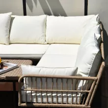 Elevate your backyard into a cozy, inviting retreat with our 4-Piece Patio Furniture Set. This stunning outdoor rattan woven sectional sofa offers luxurious comfort and ample seating for family and friends. Whether you’re hosting a summer barbecue, enjoying a quiet evening under the stars, or watching a family movie night, this versatile set adapts to your every need.