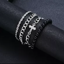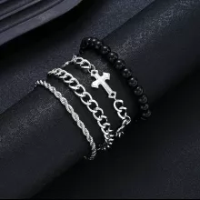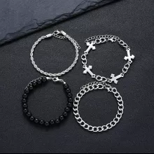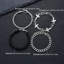 Unleash your inner style with our 4-Piece Stainless Steel Bracelet Set, designed for both men and women who want to make a fashion statement. This trendy set features unique punk-style bracelets accented with cross beads and link chains, offering a versatile accessory that can elevate any outfit. Whether you’re heading to a concert, hanging out with friends, or simply want to add some edge to your everyday look, this bracelet set is the perfect choice!