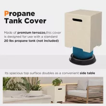 With a minimalist modern design, this concrete fire pit seamlessly blends durability and style. It is easy to set up, with a built-in gas-powered ignition system for quick lighting, and the propane tank cover ensures the setup stays neat and visually pleasing. Whether you’re hosting a lively gathering or enjoying a quiet night under the stars, this fire pit will make every moment more memorable.