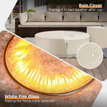 The round shape and sleek design make this fire pit ideal for any social gathering, from relaxed family evenings to entertaining guests. Measuring 42 inches in diameter and 13 inches in height, it fits well in various outdoor spaces without dominating the area, making it perfect for patios, decks, and gardens. The generous heat output of 50,000 BTU ensures warmth even on cooler nights, while the white fire glass creates an elegant touch that enhances any evening ambiance.