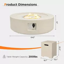 Transform your outdoor setting into a cozy, inviting haven with this 42-inch Round Outdoor Propane Fire Pit, crafted in minimalist terrazzo beige for a touch of modern style. Boasting a powerful 50,000 BTU output, this fire pit provides both warmth and ambiance to any gathering. Constructed from durable concrete, it pairs beautifully with the included white fire glass for a radiant display that enhances your patio, garden, or backyard. Designed with ease of use in mind, it comes with a propane tank cover to maintain a clean, sophisticated look, and a rain cover for all-weather protection.