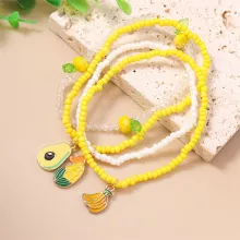 These bracelets are made without any harmful chemicals, ensuring safety and comfort for your little one. The playful banana corn designs add a touch of whimsy to any outfit, whether it’s for a party or just a fun day out with friends. Whether worn alone or stacked together, the bright yellow beads are eye-catching and stylish, making them a versatile accessory that’s perfect for any occasion.