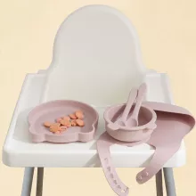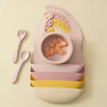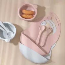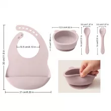 • 4-in-1 complete feeding set — bowl, plate, spoon, fork, and bib