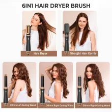 - 5 Styling Attachments: Includes a hair dryer, straightening brush, 2 air curlers (left & right), and a massage brush for daily use