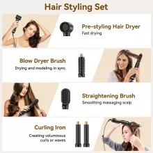 - 5-in-1 Multifunctionality: Includes hair dryer, 2 hot air curling barrels, and 2 straightening brushes