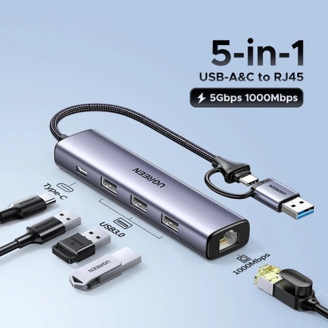 Upgrade your laptop or PC with this versatile 5-in-1 USB-C hub, designed to deliver blazing-fast wired internet, expand your USB ports, and keep your workflow smooth. With a Gigabit Ethernet port and multiple USB 3.0 connections, you can enjoy stable internet speeds up to 1000Mbps and lightning-fast data transfers of up to 5Gbps. Whether you’re streaming 4K videos, working on large files, or joining video conferences, this hub ensures a reliable and efficient connection every time.