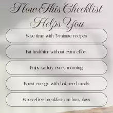 This digital checklist is designed for anyone who wants fast, nutritious, and tasty breakfasts without stress—perfect for busy professionals, parents, students, and anyone trying to eat better without spending hours in the kitchen.