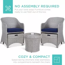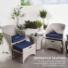 - Space-Saving Design: Ottomans slide seamlessly under the chairs, making it ideal for compact areas like balconies and porches.