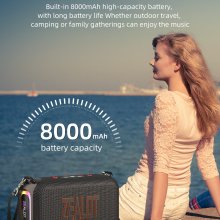 - Long-Lasting Battery: Equipped with an impressive 8000mAh battery, enjoy up to 12 hours of powerful playback on a single charge, ensuring your music keeps playing through your adventures.