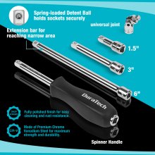 Quality meets function. The tools are crafted for strength and reliability, ensuring you have the support you need when it matters most. The universal joint allows better access in tight spaces, while the ratchet offers smooth operation and ergonomic grip.