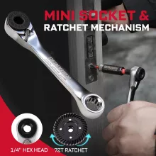 • Designed for Tight Spaces – Ratchet head and adapters offer rapid rotation where other tools can’t reach.
