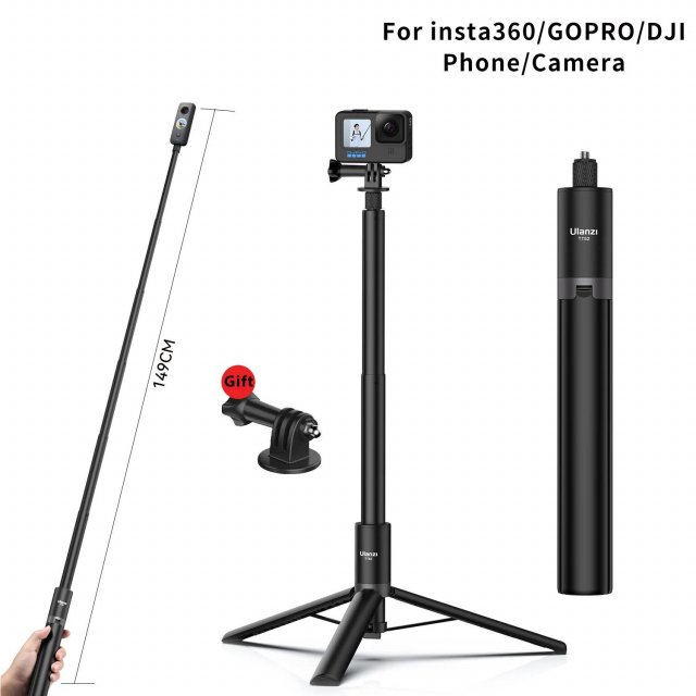 The six-section extension pole stretches up to 59 inches, allowing you to capture unique perspectives and expansive landscapes effortlessly. Whether you’re shooting with an Insta360, GoPro, DJI, or smartphone, this stick enables smooth, professional-quality footage from every angle. The bottom button allows quick conversion from selfie stick to tripod, providing ultimate flexibility in your shooting style.