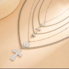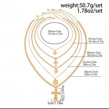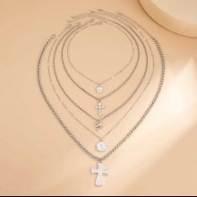 Elevate your look with this striking set of 5 hip hop-inspired metal pendant necklaces. Featuring a unique cross and coin design, these necklaces bring a trendy edge to your jewelry collection. The adjustable clavicle chains offer a perfect fit for every woman, making this set as comfortable as it is stylish. Whether you’re heading to a party or adding flair to your daily outfit, these necklaces are designed to stand out.
