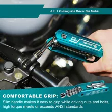 Whether you’re a DIY enthusiast, a mechanic on the go, or just someone who likes to stay ready for anything, this 6-in-1 Folding Nut Driver Set delivers the reliability and performance you need. With six metric sizes neatly packed into a slim, foldable design, it’s the ultimate space-saving solution for quick fixes, detailed repairs, and everyday tasks. This tool isn’t just practical—it’s powerful, durable, and designed to make your job easier, wherever you are.
