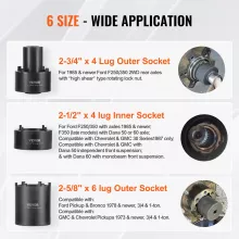 - 6 Essential Socket Sizes – Includes 2-3/4″ x 4 Lug Outer, 2-5/8″ x 6 Lug Outer, 2-3/8″ x 4 Lug Outer, 2-1/2″ x 4 Lug Inner, 2-1/4″ x 4 Lug Inner, and FWD front axle puller