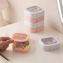 Each box measures 3.7 inches wide, 3.7 inches long, and 1.2 inches high—perfect for holding items like earrings, hair clips, swabs, and more. Keep your essentials tidy without taking up unnecessary space. These stackable containers ensure that your accessories stay secure and in one place, no matter where life takes you.