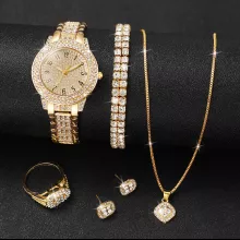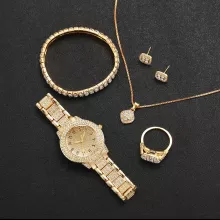 This diamond watch and jewelry set has quickly become my favorite go-to for accessorizing my outfits. The design is exquisite, with the gold band providing a beautiful contrast against the sparkling diamonds. They're versatile enough to wear daily yet sophisticated enough for special occasions as well. Every time I put them on, I feel instantly more glamorous and confident about myself.