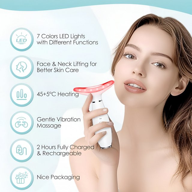 Turn back the clock on your skin with this advanced 7-Color LED EMS Microcurrent Neck & Face Lifting Massager. Designed to target fine lines, wrinkles, sagging skin, and double chins, this multifunctional device combines LED light therapy, high-frequency microcurrent, gentle vibration, and soothing heat to help you achieve firmer, smoother, and more radiant skin from the comfort of your home.