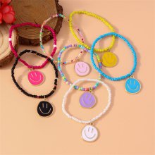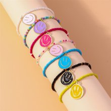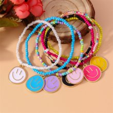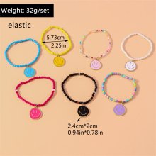7-Piece Boho Beaded Charm Bracelet Set for Women – Colorful Smile Face Jewelry
