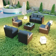The addition of this patio sofa set has transformed our backyard into a tranquil haven where we unwind after hectic days at work. With seven pieces, there's enough room for everyone in the family to stretch out and relax without feeling cramped or uncomfortable. The craftsmanship is evident in every detail - from the robust structure to the plush cushions that provide unparalleled comfort.