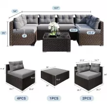 Elevate your outdoor living with our 7-Piece Patio Sofa Set, designed for those who cherish both style and durability. Crafted with a sturdy steel frame and adorned with all-weather PE rattan wicker, this set boasts gradient shades of coffee, adding a touch of elegance to your patio, garden, park, or yard.
