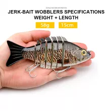 Get ready to experience next-level angling with this 7-Segment Jointed Fishing Lure, built to mimic the lifelike motion of real baitfish. With an ultra-realistic body design and precision-engineered action, this 6-inch (15cm), 2oz (58g) swimbait moves with an S-shaped swimming pattern that predators simply can’t resist. Whether you’re targeting trophy pike in deep waters or bass cruising the shallows, this hard bait delivers performance you can count on—cast after cast.