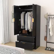 Crafted from high-quality MP2 board, this armoire wardrobe is built to last. The scratch-resistant, water-repellent, and fade-resistant surface keeps it looking brand-new, even with daily use. Smooth-gliding metal drawer rails and durable metal hinges ensure that every interaction with this closet is seamless and sturdy. Easy to maintain, it simply requires a quick wipe to keep clean and gleaming.