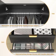 This wardrobe closet isn’t just for clothes—it’s designed to adapt to your lifestyle. Use it to declutter your living room, file away office essentials, or add a chic storage option in your hallway or basement. Its modern minimalist style makes it an easy match for any interior design, while its sturdy structure gives you dependable storage every day.
