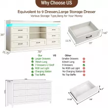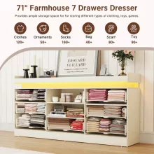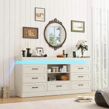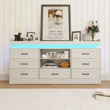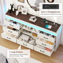 With 7 spacious drawers and 2 sliding barn doors, this dresser brings order to chaos. Store clothes, accessories, electronics, toys, or daily essentials with ease. The wide drawers measure 23.62″ W x 13.78″ D x 5.11″ H, offering generous space for large and small items alike. Add to that a built-in charging station and customizable LED lighting, and you’ve got more than just a dresser—it’s a lifestyle upgrade.