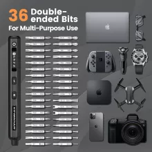 This precision screwdriver set includes 72 different bits (36 double-ended), covering a wide range of applications. Whether you’re working on electronic devices, laptops, drones, glasses, clocks, toys, or model kits, this set has the perfect bit for every task.