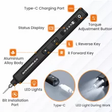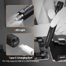Powered by a durable 500mAh battery, this electric screwdriver is built to last. With a single charge, it can tighten up to 900 screws, ensuring uninterrupted work. The convenient USB-C charging port allows you to recharge quickly and easily, so you’re always ready to tackle your next repair project.