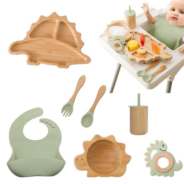 • 7-piece complete set – Includes bowl, dinner plate, silicone spoon, and more for a full feeding solution.