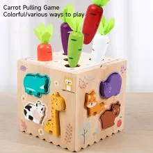 The set includes a variety of colorful, durable wooden pieces: 5 carrots, 10 magnetic worms, 6 magnetic fish, 4 shapes, 4 balls, 5 functional templates, and a convenient wooden storage box. Whether it’s harvesting carrots, catching magnetic worms, matching shapes, or patting the ball, every activity helps young minds grow while having fun!