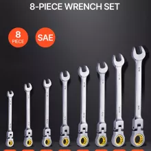 Take the stress out of mechanical and household repairs with this premium 8-piece flex-head ratcheting combination wrench set. Designed for smooth, efficient, and comfortable use, it gives you the flexibility and power you need to tackle tight spaces, stubborn bolts, and everyday tasks with confidence. Whether you’re working in the garage, fixing equipment, or handling DIY projects, this set delivers reliable performance every time.