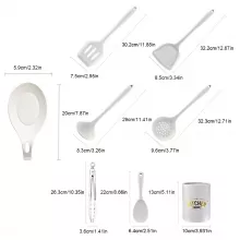 This complete kitchen utensil collection includes everything you need for everyday cooking. Each utensil is crafted from high-quality food-grade silicone that’s heat-resistant, flexible, and gentle on all cookware surfaces. The set includes: