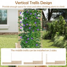 The 2-tiered design of this planter box ensures plants with varying root depths thrive. The elevated height of the two boxes allows for easier gardening, reducing the need for bending or kneeling while tending to your plants. The open-ended base promotes optimal drainage and air circulation, ensuring the health and vitality of your plants year-round. With the added vertical trellis structure, you can easily grow climbing plants such as tomatoes, cucumbers, and climbing flowers—perfect for saving space while creating a lush, green garden.