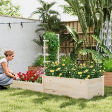 What sets this raised garden bed apart from others is its thoughtful, space-maximizing design. Not only does it provide ample room for plants to grow in two different heights, but it also includes a vertical trellis that can be adjusted to maximize your available space. The open-ended base ensures excellent drainage, preventing waterlogging and root rot, while the solid wood construction adds durability and a timeless, natural look. Whether you’re a city dweller with a small patio or a homeowner with a larger outdoor area, this raised garden bed will fit seamlessly into your space and provide an ideal environment for your plants to thrive.