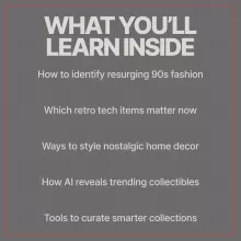 - Chapter 4: AI Meets 90s Trends – How to use AI to spot the hottest items, prompt Midjourney & ChatGPT for 90s style, and free AI tools to curate your collection