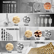 This set is ideal anytime you need reliable drilling or fastening power. Use it for home repairs, furniture assembly, electrical projects, or professional construction work. Whether you’re drilling through wood for shelving, fastening screws into plastic, or working with metal, this kit is designed to deliver excellent results every time.