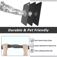 This pet placemat is made from high-performance, ultra-absorbent material that traps water from spills and drips—whether from your pet’s water bowl or their chin. The top surface cleverly conceals stains from water, milk, or kibble, while the waterproof rubber backing prevents liquids from seeping through to your floor. Plus, it stays put thanks to its 100% non-slip rubber lining, keeping bowls stable and in place even during the most enthusiastic meals.