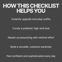 - Simple, actionable advice: Our step-by-step checklist makes it easy to add luxe accessories to your wardrobe without feeling overwhelmed.