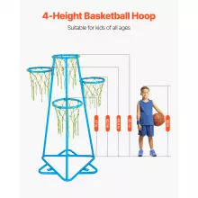 This basketball hoop set grows with your child. Featuring four height settings — 37.8 inches, 42.9 inches, 48.8 inches, and 55.5 inches — it’s suitable for children ages 3 to 6 and beyond. Whether indoors or outdoors, this hoop adapts to your child’s height and skill level, so the fun never stops. The multi-level design with four separate hoops adds variety, encourages group games, and brings extra excitement to every shot.