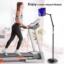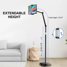 Enjoy ultimate comfort and flexibility with this adjustable floor stand designed for phones and tablets between 4.7 and 12.9 inches. Whether you’re streaming your favorite shows, hosting a live broadcast, following a recipe in the kitchen, or shooting video hands-free, this stand ensures your device stays secure and perfectly positioned. Crafted from durable metal, it offers stability and style that fits effortlessly into any room.