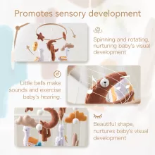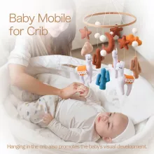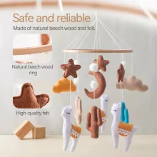 This baby crib mobile combines style, safety, and developmental benefits in one delightful design. It includes a wooden holder and mobile arm, plush alpaca toys, and a soothing musical feature. With a total height of 22.4 inches (57 cm) and toy dimensions around 15.3 inches (39 cm), it’s perfectly sized for most cribs and bassinets. Certified safe for infants, it contains no harmful chemicals and is suitable for boys and girls alike.