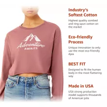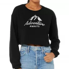 Adventure Awaits Cropped Long Sleeve Sweatshirt – Hiking Women’s Crop Top – Camping Long Sleeves Pullover