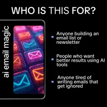 AI Email Magic focuses on clarity over complexity. You’ll learn how to guide AI instead of letting it ramble, how to shape one core email into multiple tones, and how to test smarter without burning out. Every tip is designed to save time while improving results, whether your goal is more clicks, replies, or sales.