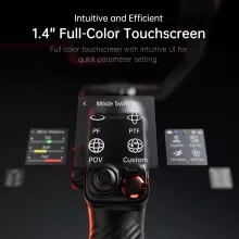 The responsive joystick allows for precise pan and tilt adjustments, ensuring your shots are perfectly framed. Use the side roller to control zoom, focus, and even adjust the built-in fill light for the perfect lighting in any environment. With one-touch mode switching and AI tracking calibration, this gimbal adapts to your needs instantly.