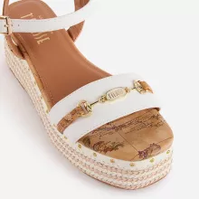 Alviero Martini Prima Classe Women’s White Wedge Sandals with Buckle & Bow