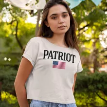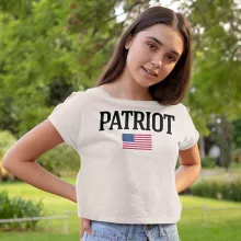 America Flag Patriot Cropped T-Shirt – USA Trendy Tee – Patriotic Women’s Basic T-Shirt